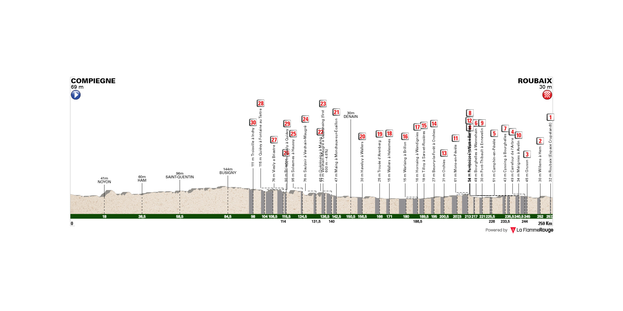 Empieza el 12-04-2026 en Compiègne y termina en Roubaix.