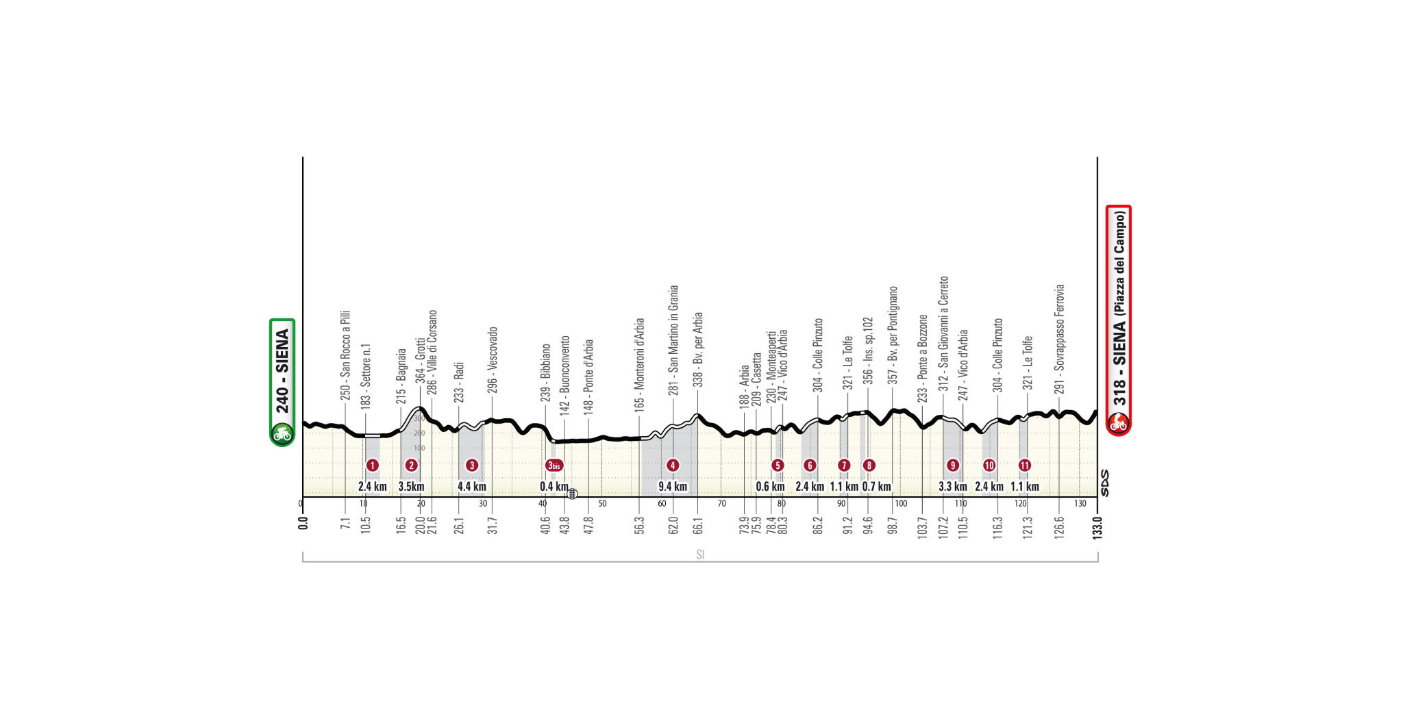 Empieza el 07-03-2026 en Siena y termina en Siena (Piazza del Campo).
