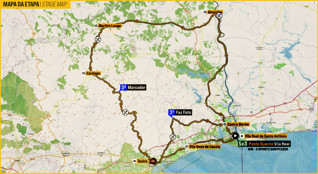 Su fecha es 18-02-2026, transcurre entre Vila Real de Santo António (POR) y Tavira (POR), su longuitud es de 185.6 kms y el horario previsto de comienzo y fin es de 11:55:00 a 16:40:00.